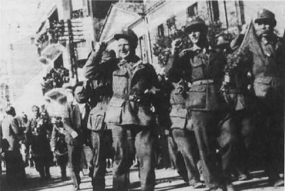 Bernhard Sühlbrandt : Communist, went over to ELAS Greek resistance, seen in 1st November 1944 liberation Parade in Thessaloniki, see photo below – copy from Hans-Peter Klausch, 1986, Die 999er. Sühlbrandt is the last one on the right of the picture.