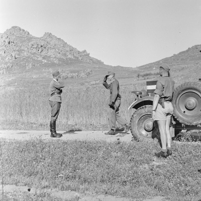 “Showing Morris-Commercial CS8 Z389950 picked up from the battlefield and put to use as a harbour command’s hack at Kastron, Isle of Lemnos, Greece, 1941”.