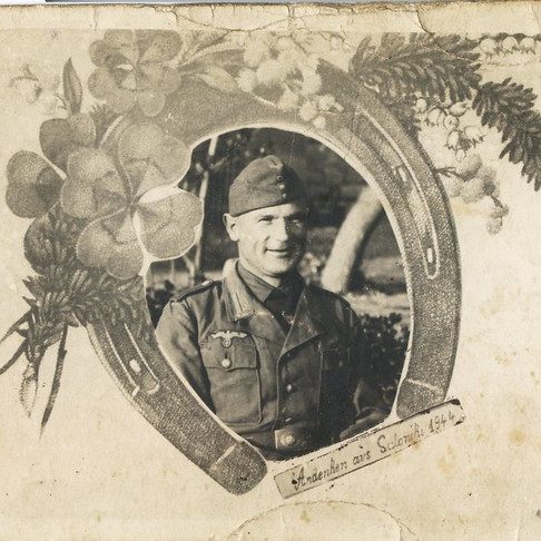 Born in 1916, my grandfather grew up as an orphan in a religious institution, with his three brothers. He finished his Abitur (Highschool) in 1937 in his home town Fuerth (Northern-Bavaria or rather Franconia, as the family would usually specificy). This is where he had met Irmgard Puff (renamed Herrmann), in 1933 or earlier and whom he later married in 1938 after his Arbeitsdienst (Hitler’s “national work service”) and her Maedelsdienst time (the young women’s equivalent). He went through military training (1938-1939) in Wünsdorf training school near Berlin, where he was integrated into the Panzer-Lehr-Regiment (an unit that had participated in the Spanish Civil War, hence he got to wear the “Spanien-Armband” on his uniform, although he himself didn’t go to Spain (as far as we know). My grandmother Irmgard joined him there in Wünsdorf (near Berlin where part of the relative on her side, the Mahir branch of her mother’s family lived) and that’s where they married a few months before their first child, my late oncle Adolf († 2022) was born. The regiment’s officer apparently held the ceremony or at least signed the marriage certificate.